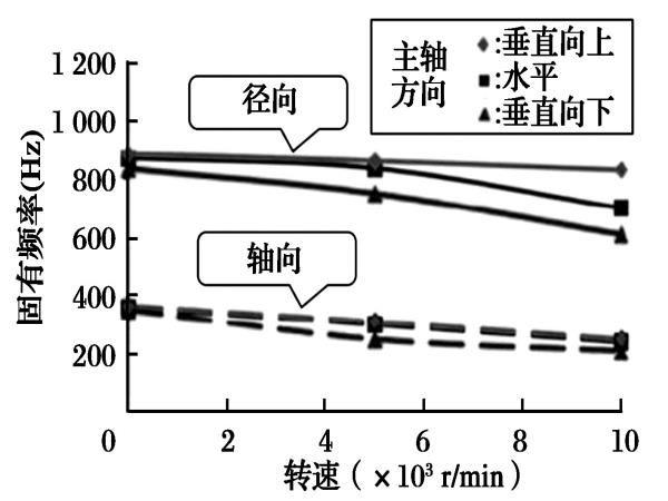 圖3 主軸方向和轉(zhuǎn)速對固有頻率測量的影響