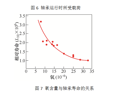 盡管其品種相對比較單一,但它也是結構鋼(齒輪鋼、軸承鋼、彈簧鋼、非調(diào)質(zhì)鋼、冷鐓鋼)中質(zhì)量要求最為苛刻的品種??量痰氖切枰岣咪摬牡募儍舳葒栏窠档蚈、S、Ca、N、Ti等微量元素的含量,還需控制包括冶煉、澆鑄、軋制、鍛造等冶金成材過程中可能造成的缺陷,例如常采用真空脫氣、電渣重熔、爐外精煉等冶煉工藝。降低氧含量可以明顯延長軸承的疲勞壽命是業(yè)內(nèi)一個不爭的事實,圖7給出了氧含量與軸承相對壽命的關系曲線圖。在國標GB/T 18254—2016中,對高碳鉻軸承鋼的O含量做了嚴格規(guī)定,實際生產(chǎn)中隨著冶金設備及工藝的開發(fā)控制更嚴,最低可達到5ppm以下的水平。另外,標準或技術協(xié)議中對冶煉方法、非金屬夾雜物、偏析、脫碳層、低倍組織、顯微組織、碳化物不均勻性、表面質(zhì)量、尺寸允許公差等都有相關限定,鋼廠及軸承生產(chǎn)企業(yè)在鋼材進出廠時,必須嚴加檢測和嚴格管理,馬虎不得。
