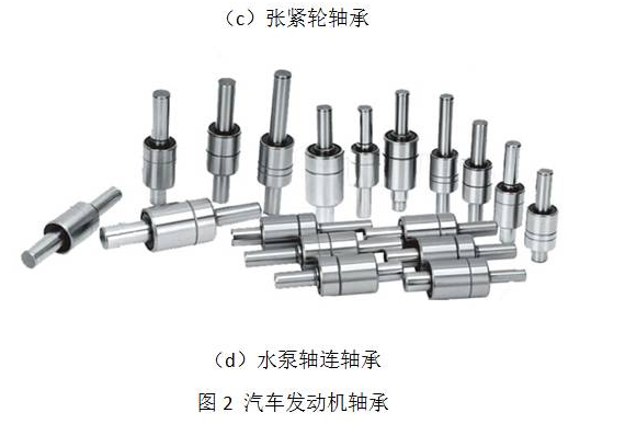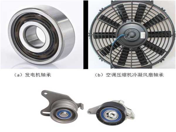 發(fā)動機是汽車的心臟,源源不斷為其他部件提供動力。內(nèi)部軸承先前以滑動軸承占主導,目前多數(shù)在改進軸承性能的前提下,采用密封球軸承,圖2為發(fā)動機輔機中的幾種典型軸承。
