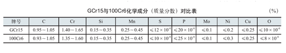 表1 GCr15與100Cr6化學成分(質(zhì)量分數(shù))對比表(%)