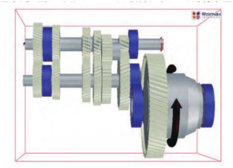 圖3為我公司MA型手動變速箱的軸承位置示意圖(見圖中藍色標記部分),其中在一軸一擋位為深溝球軸承25D52E15,一軸五擋位為深溝球軸承25D62E17,二軸一擋位為圓柱滾子軸承32D62E16,二軸五擋位為深溝球軸承22D57E17。