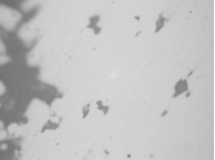 非金屬夾雜物是軸承鋼冶煉過(guò)程產(chǎn)生的,無(wú)法避免,因此GB/T 18254—2016對(duì)軸承鋼非金屬夾雜物有特殊規(guī)定。非金屬夾雜物存在于套圈基體內(nèi),成為裂紋源造成套圈早期剝落;加工過(guò)程中偶爾會(huì)裸露套圈表面,造成套圈報(bào)廢。磨削滾道面的非金屬夾雜物裸露形貌如圖1所示。