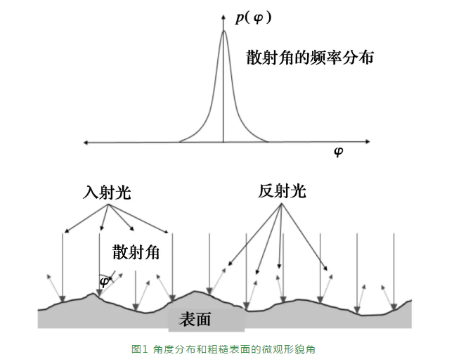 散射光技術(shù)是一種檢測表面微觀形貌的新方法,其由VDA 2009定義。本標(biāo)準(zhǔn)描述了散射光角分辨率的測量方法,該法特別適用于摩擦因數(shù)要求非常低的光滑表面,其基于光散射定律和鏡面模型。散射光法的概念如圖1所示。入射光以粗糙表面的微觀形貌角φ反射。通過Fourier光學(xué),反射光在聚焦平面上傳輸。探測器記錄散射角的強(qiáng)度分布,也就等同記錄了頻率分布。