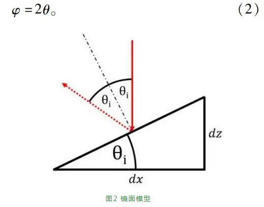 鏡面反射的關(guān)系如圖2所示。該面的幾何特征可用角θ或梯度dz/dx表征。幾何光學(xué)允許應(yīng)用如圖2所示的反射定律。表面的輪廓邊緣沒有高的梯度,因此可假設(shè)為