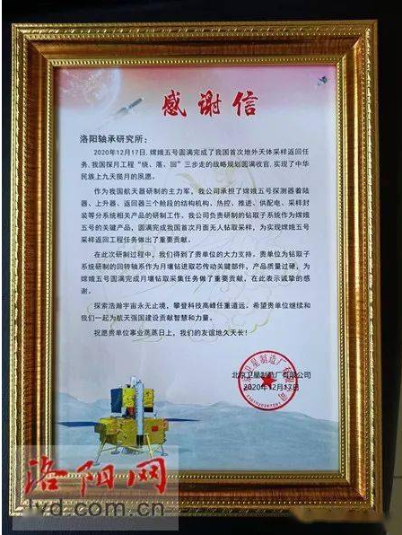 繼2019年收到探月工程重大專項(xiàng)領(lǐng)導(dǎo)小組辦公室發(fā)來(lái)的感謝信后,憑借為嫦娥五號(hào)月球取樣提供“巧臂”,近日軸研所又收到了合作單位北京衛(wèi)星制造廠有限公司發(fā)來(lái)的感謝信。