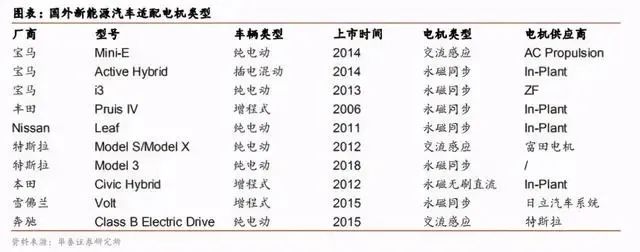 數(shù)據(jù)顯示,2019年9月左右,新能源汽車驅(qū)動電機(jī)的主流是永磁同步電機(jī),占裝機(jī)量的90%以上;交流異步電機(jī)在特斯拉等車型中仍在應(yīng)用,其具備轉(zhuǎn)速高、可靠性好等優(yōu)勢,適合運動型乘用車;開關(guān)磁阻電機(jī)盡管在多項性能指標(biāo)上有優(yōu)勢,但是由于其結(jié)構(gòu)導(dǎo)致的轉(zhuǎn)矩脈動會導(dǎo)致電機(jī)的噪音和振動較大,僅在少量工程車輛中有應(yīng)用。