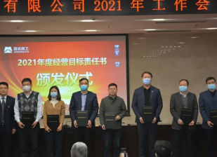 會上,朱峰向陳鋒頒發(fā)了公司2021年“經(jīng)營目標(biāo)責(zé)任書”,陳鋒代表公司向各下屬企業(yè)負(fù)責(zé)人頒發(fā)了2021年“經(jīng)營目標(biāo)責(zé)任書”。