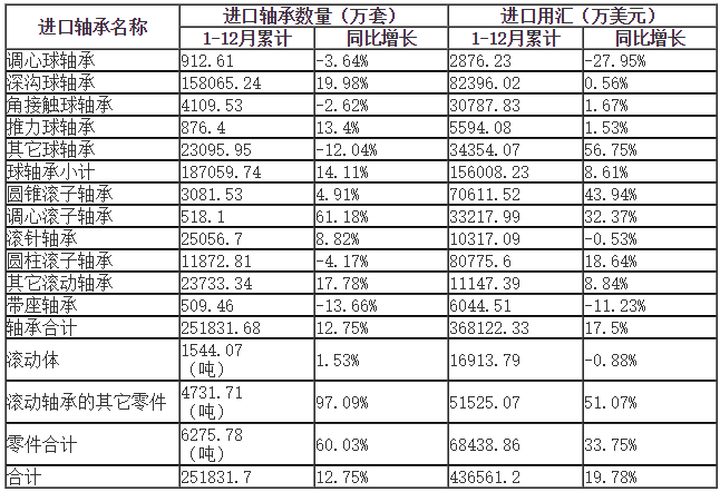截止2020年12月份,我國累計進(jìn)口用匯43.66億美元,比去年同期增長19.78%。較上個月的19.1%上漲了0.68個百分點進(jìn)口軸承25.18億套,比去年同期增長12.75%,較上個月的13.16%降低了0.41個百分點;