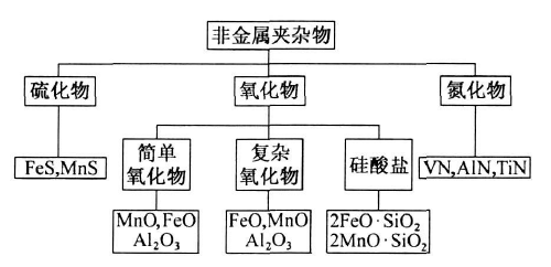 鋼中非金屬夾雜物按化學成分詳細分類見圖1,主要分為三大類。