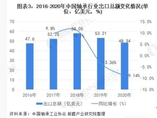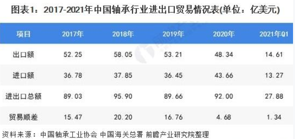 注:2017-2020年為中國軸承工業(yè)協(xié)會(huì)數(shù)據(jù),2021年為海關(guān)總署數(shù)據(jù),兩者統(tǒng)計(jì)口徑略有差別。