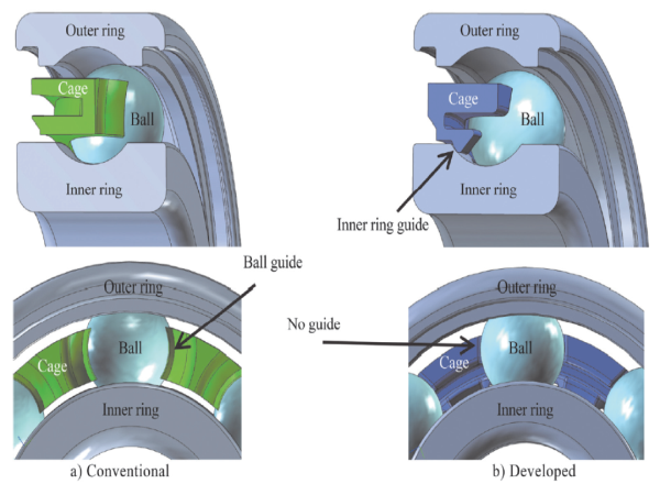 研究通過(guò)開(kāi)發(fā)新結(jié)構(gòu)的保持架,以降低深溝球軸承摩擦力矩?;赬射線CT的觀察結(jié)果,可得到以下降低摩擦力矩的指南。