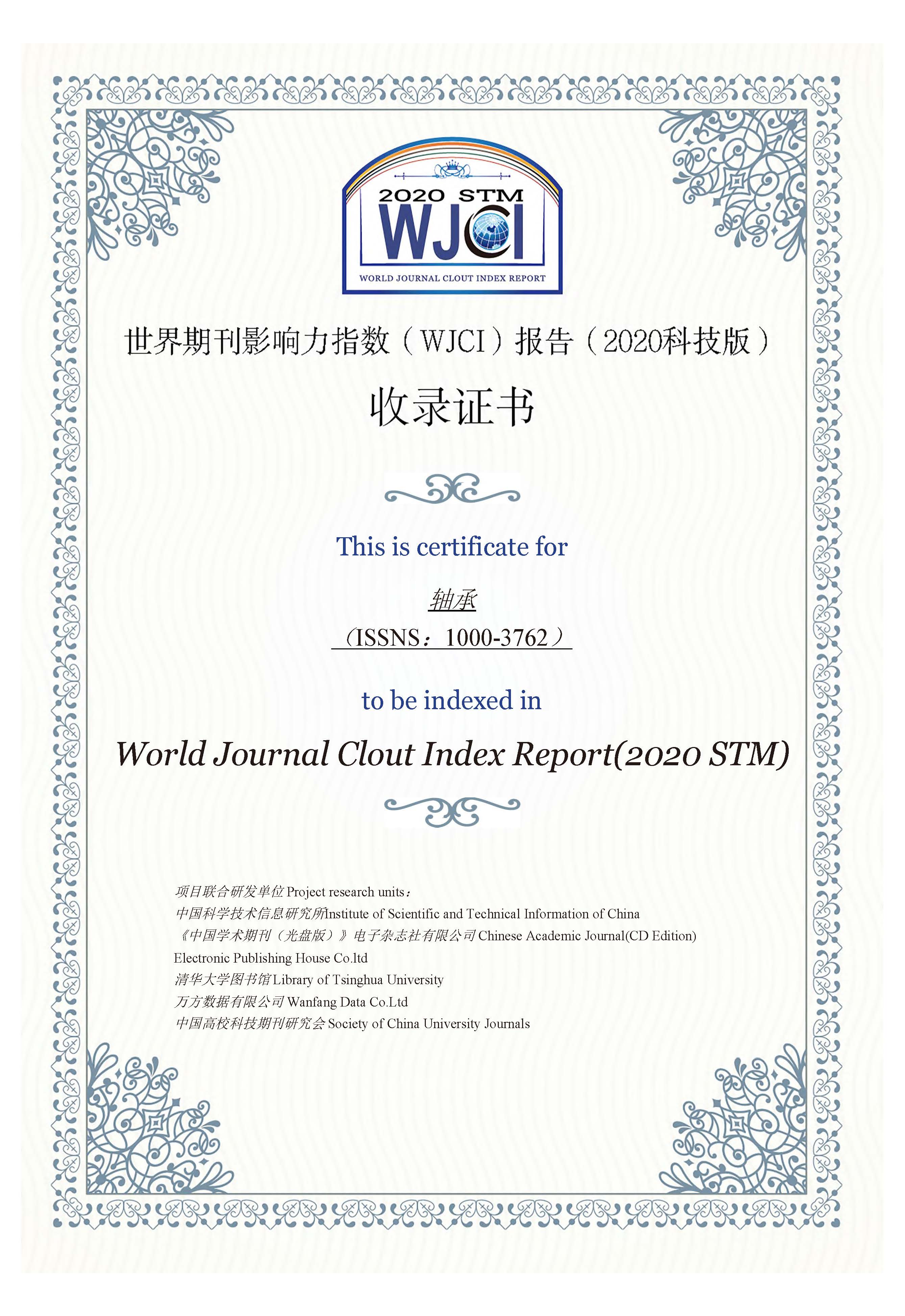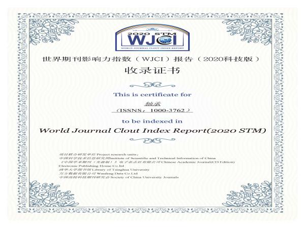 《軸承》被WJCI收錄,表明其學(xué)術(shù)質(zhì)量和傳播價(jià)值得到廣泛認(rèn)可。在此,感謝主管、主辦單位軸研所的大力扶持,感謝廣大編委、審稿專家、作者、讀者的關(guān)心和厚愛(ài)!