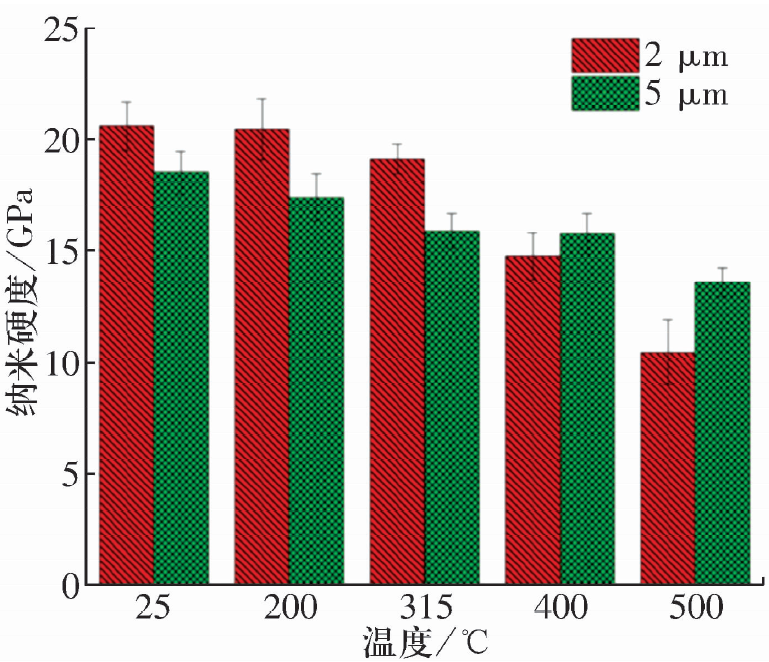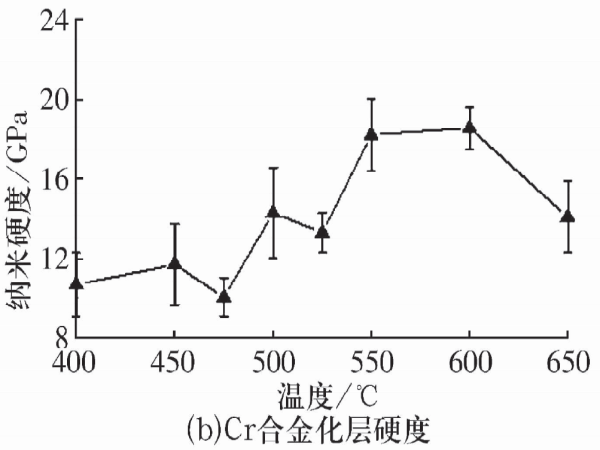 鑒于純Cr涂層硬度較低,為滿足8Cr4Mo4V鋼服役需求,文獻(xiàn)[42]利用微弧氧化技術(shù)在8Cr4Mo4V鋼表面沉積了不同厚度的CrN涂層,其硬度如圖12所示,CrN涂層硬度最高達(dá)20 GPa以上,相較于文獻(xiàn)[12]中8Cr4Mo4V鋼基體硬度(11 GPa),提高了80%以上,這將顯著提高材料耐磨性。另有研究顯示,CrN涂層可顯著提高材料耐蝕性不過8Cr4Mo4V鋼該涂層的耐蝕性目前缺乏相關(guān)的試驗(yàn)數(shù)據(jù)。