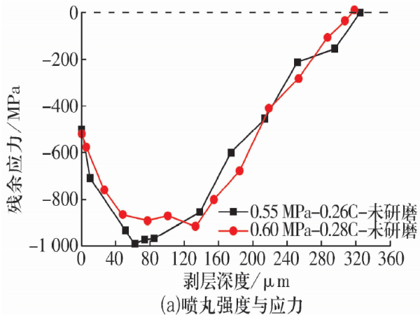 圖14 噴丸對(duì)8Cr4Mo4V鋼殘余應(yīng)力及硬度的影響