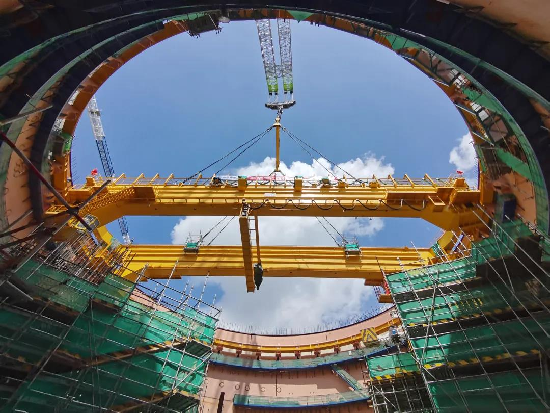 此次吊裝是國內(nèi)核電環(huán)吊橋架整體吊裝,開啟了漳州核電“華龍一號”主設(shè)備吊裝之旅。