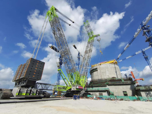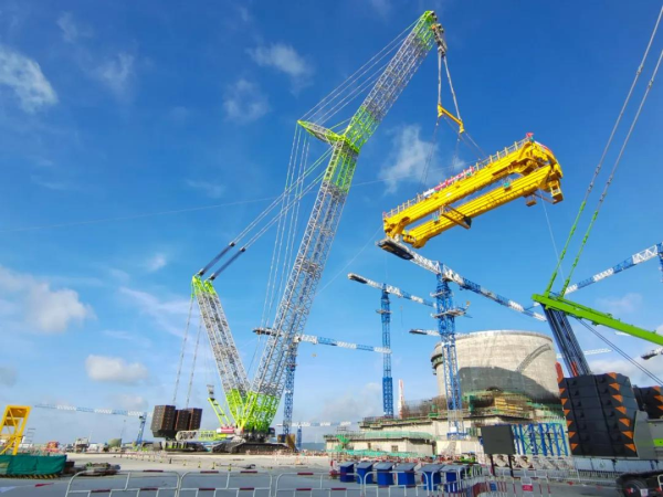 2021年8月24日,中核機(jī)械工程順利完成漳州核電“華龍一號”1號機(jī)組環(huán)吊橋架整體吊裝工作。此次吊裝采用中聯(lián)重科ZCC3200NP型3200噸履帶式起重機(jī)吊裝完成。
