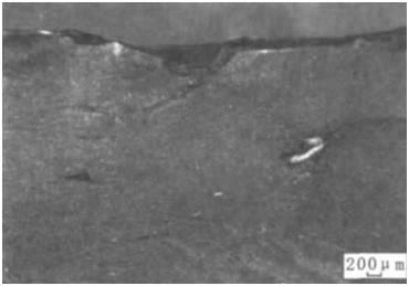 材料冶金質(zhì)量從根本上影響軋機(jī)軸承的使用壽命,需要嚴(yán)格控制材料缺陷如氣孔、疏松、碳化物積聚、夾雜物等,特別是存在夾雜物時(shí),裂紋首先在夾雜物與基體交界處形成并擴(kuò)展,導(dǎo)致早期疲勞剝落(圖2、圖3)。