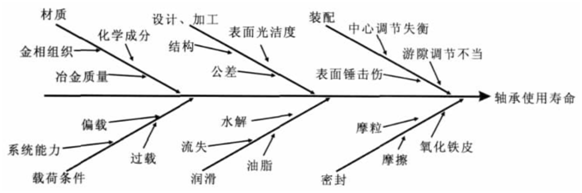圖1 影響軋機(jī)軸承使用壽命的因素分析魚骨圖