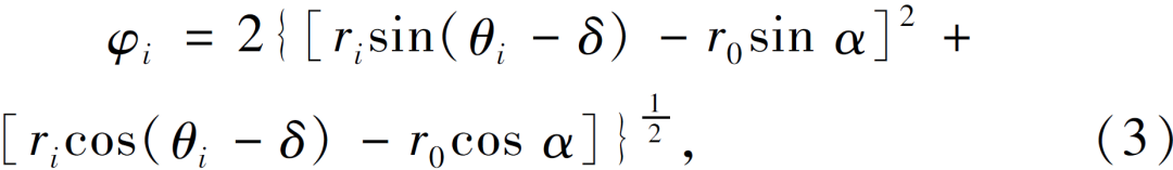 根據(jù)直角坐標(biāo)系與極角坐標(biāo)系的轉(zhuǎn)換關(guān)系,采用修正后的極角、極徑進(jìn)行位置度φ的評(píng)價(jià),即