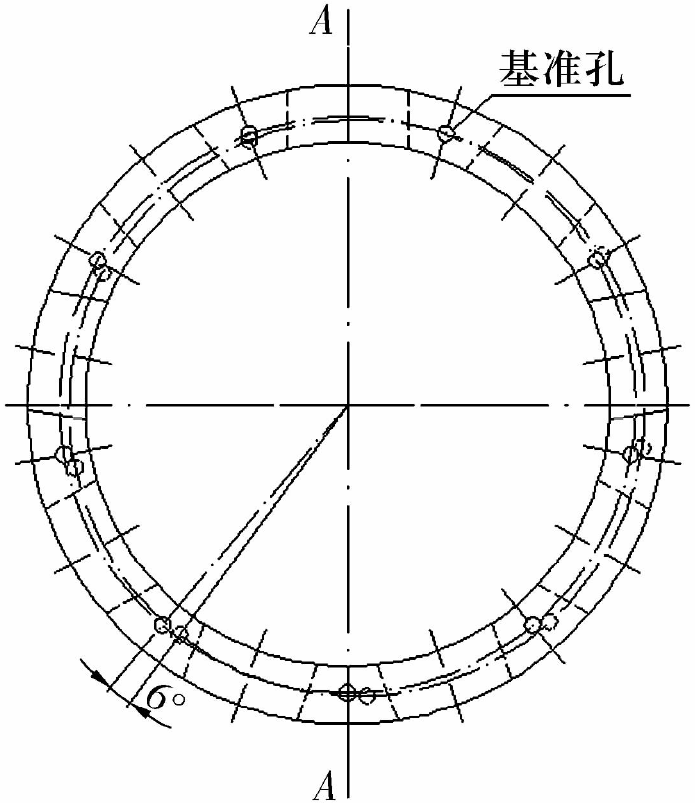分離型半保持架鉚釘孔采用外徑定位加工且均勻分布在保持架表面,各孔互為基準(zhǔn),通過夾具將半保持架固定在測量平臺(tái)的適當(dāng)位置。