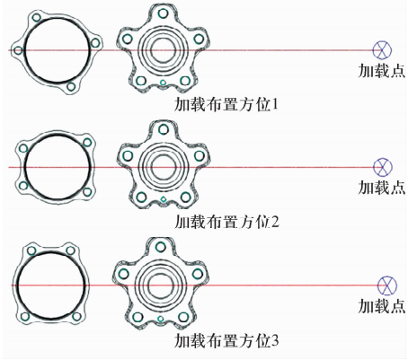 圖11 剛性試驗中凸緣外圈的3種布置方位