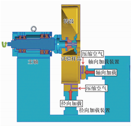 加載測量輪轂軸承摩擦力矩是一大技術難點,洛陽軸承研究所有限公司在2005年開發(fā)了機械支承軸承實現(xiàn)加載狀態(tài)下摩擦力矩的測量,由于機械支承軸承引入的額外摩擦,降低了摩擦力矩測量精度。2014年,國內(nèi)以萬向精工為代表開發(fā)了氣浮加載模塊,氣體摩擦因數(shù)降低到了0.000 01,基本消除了外部摩擦的影響,提升了摩擦力矩的測量精度和穩(wěn)定性,其加載模塊的原理如圖8所示。