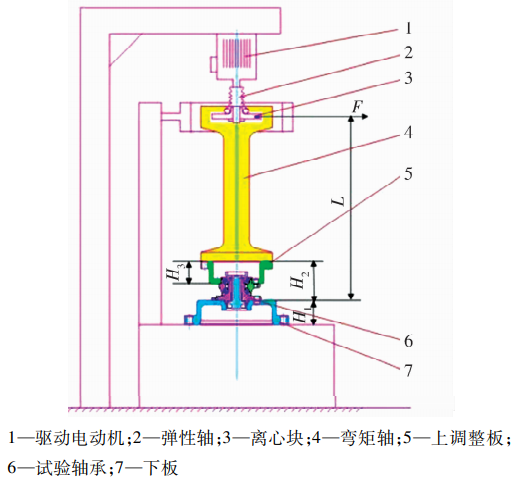 1)試驗軸承固定,采用彎矩載荷旋轉(zhuǎn)獲得對輪轂軸承結(jié)構(gòu)的疲勞試驗(圖5);