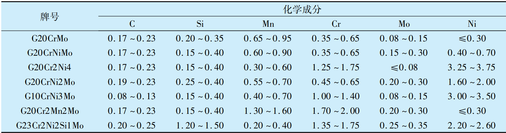 表1 我國滲碳軸承鋼牌號及其化學(xué)成分(質(zhì)量分?jǐn)?shù))