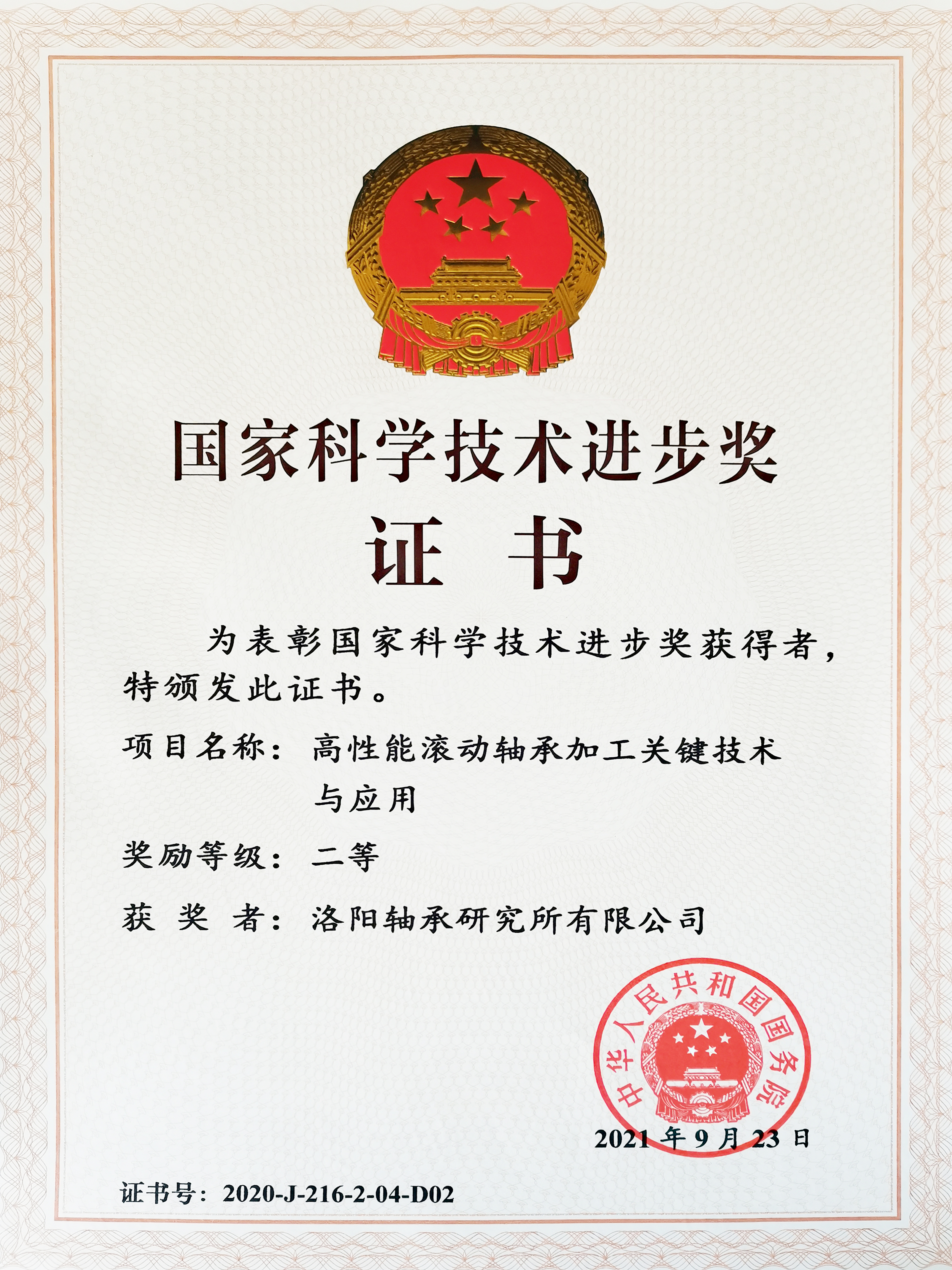 2021年11月3日,2020年度國家科學技術獎勵大會在北京人民大會堂隆重舉行。由洛陽軸承研究所有限公司(以下簡稱軸研所)作為主要參與單位完成的“高性能滾動軸承加工關鍵技術與應用”項目榮獲2020年度國家科技進步二等獎。