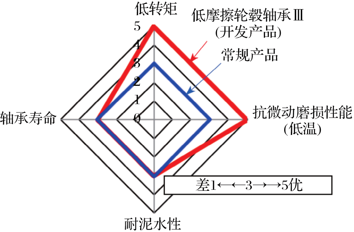 與常規(guī)產(chǎn)品相比,新開(kāi)發(fā)的低摩擦輪轂軸承Ⅲ的轉(zhuǎn)矩減小了62%。通過(guò)應(yīng)用之前開(kāi)發(fā)的技術(shù)參數(shù)和新開(kāi)發(fā)的潤(rùn)滑脂(改進(jìn)了低摩擦輪轂軸承Ⅱ的內(nèi)部潤(rùn)滑脂)來(lái)實(shí)現(xiàn)轉(zhuǎn)矩的減小。