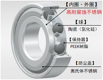 由于滾道圈(內(nèi)、外圈)采用了高耐腐蝕不銹鋼,與現(xiàn)行品相比具備以下的優(yōu)點(diǎn)和使用效果。