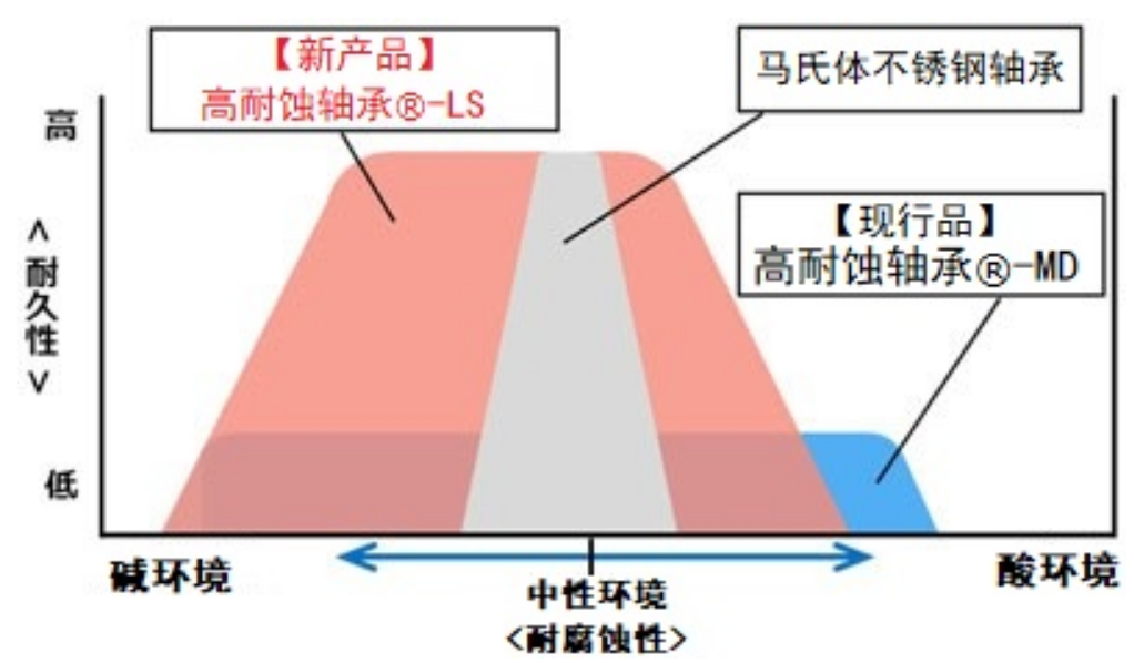 此次開(kāi)發(fā)的新產(chǎn)品適用于普通不銹鋼軸承無(wú)法對(duì)應(yīng)的腐蝕環(huán)境,現(xiàn)行品則適用于新產(chǎn)品不能對(duì)應(yīng)的一部分酸環(huán)境。