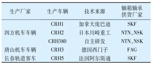 表3 動車組技術來源和進口軸承的生產(chǎn)廠家