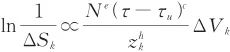 式中△Sk代表單元體積幸存概率,N代表每一轉(zhuǎn)的應(yīng)力循環(huán)次數(shù),τ代表滾道接觸下的切應(yīng)力,τu代表材料的疲勞極限切應(yīng)力,△Vk代表應(yīng)力作用的單元體積,zk代表應(yīng)力作用深度,e、c、h代表通過試驗(yàn)確定的Weibull參數(shù)。