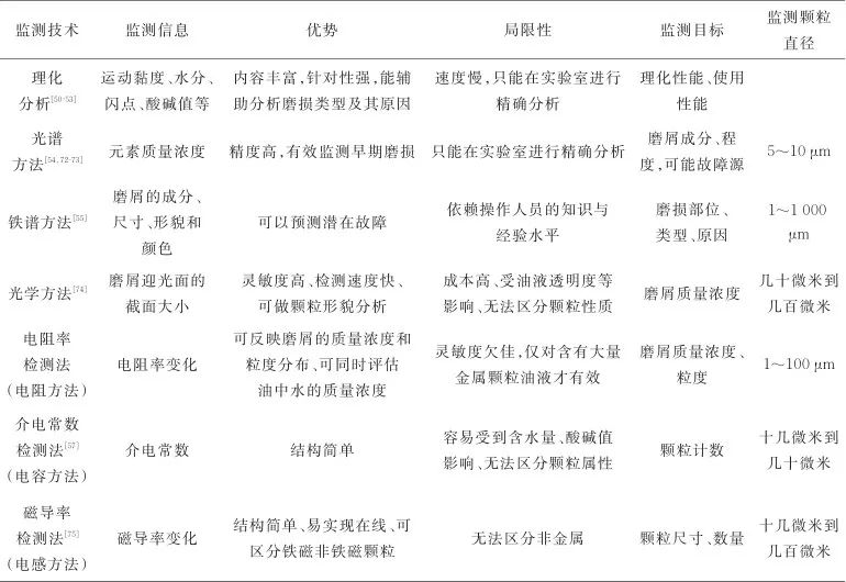 表3 潤(rùn)滑油監(jiān)測(cè)各類技術(shù)比較[60?61,63,70?71]