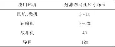 表1 不同應(yīng)用中的潤(rùn)滑油過濾網(wǎng)過濾精度