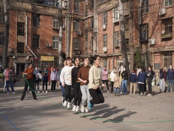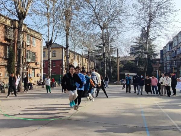 “一、二、三、四……”在氣勢如虹的計數(shù)聲中,隊員們通力合作、默契配合,搖繩的隊員手腕翻飛,跳繩的隊員疾如飛燕。絆倒了也不言放棄,迅速調(diào)整步伐,重新投入比賽,繩子擦過地面發(fā)出清脆的“噠噠”聲,伴隨著不絕于耳的加油聲、歡呼聲,把現(xiàn)場氣氛一次次推向高潮。