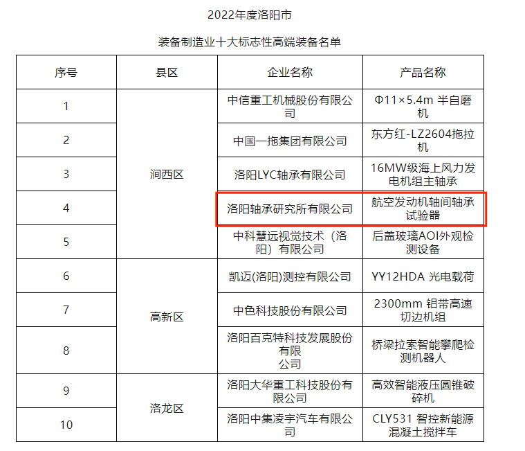 近日,洛陽市工信局發(fā)布2022年度洛陽市裝備制造業(yè)十大標(biāo)志性高端裝備評(píng)選結(jié)果,公司研制的航空發(fā)動(dòng)機(jī)軸間軸承試驗(yàn)器成功入選。