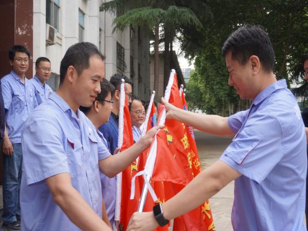 近日,公司在所區(qū)和高新產(chǎn)業(yè)園區(qū)舉行“奮戰(zhàn)雙過半”專項(xiàng)攻堅(jiān)黨員、青年突擊隊(duì)授旗儀式。黨委副書記、總經(jīng)理高飛,總經(jīng)理助理喬忠義為13支黨員突擊隊(duì)和8支青年突擊隊(duì)授旗,在公司掀起沖刺“雙過半”的熱潮。