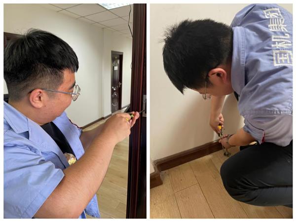 清洗過程中,大家明確分工、熱情滿滿,在辦公室之間來回奔波忙碌,用清潔工具將布滿污垢的空調(diào)濾網(wǎng)清洗干凈,晾干之后再裝回。同時(shí),逐個(gè)檢查門窗桌椅,利用專業(yè)工具,對(duì)螺絲松動(dòng)、脫落、椅子掉板、螺釘外冒、門框開裂、窗戶卡頓等現(xiàn)象進(jìn)行了修理。