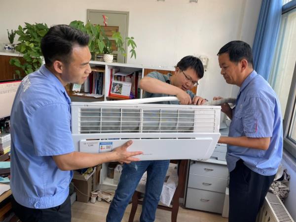 共同開展志愿活動(dòng),為事業(yè)部職能部門辦公室、會(huì)議室進(jìn)行清洗空調(diào)濾網(wǎng)、修理破損的門窗桌椅。
