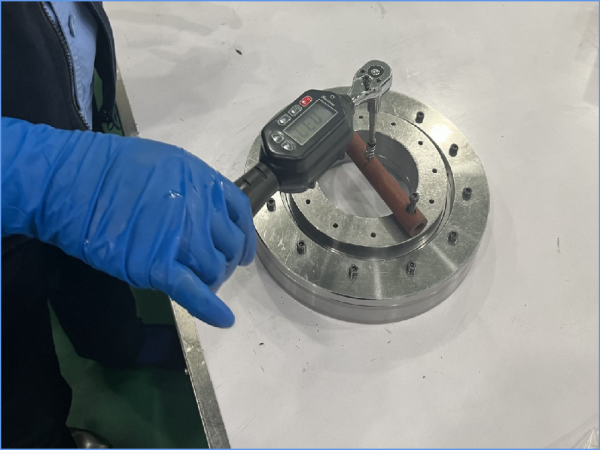 2022年,胡先利作為項目負(fù)責(zé)人,帶領(lǐng)班組成員經(jīng)過不斷摸索和研究,找到某型號交叉滾子軸承啟動摩擦力矩測量結(jié)果穩(wěn)定性和重復(fù)性差的原因。通過設(shè)計一種能夠精準(zhǔn)控制雙半外圈預(yù)緊力的工裝,消除了裝配過程中預(yù)緊力不一樣對軸承啟動摩擦力矩的影響,實現(xiàn)節(jié)約人工成本約3萬元,產(chǎn)品檢驗效率提高了90%,產(chǎn)品啟動摩擦力矩穩(wěn)定性提高到95%。