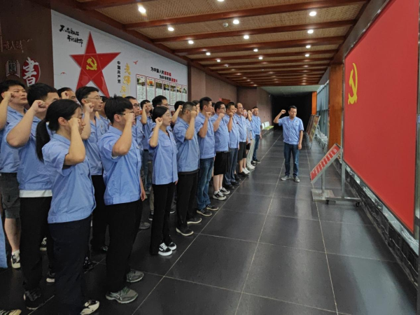 實(shí)景學(xué)習(xí)完成后,隊(duì)員們走進(jìn)宣誓廳,重溫入黨誓詞。由李繼鋒同志領(lǐng)誓,黨員同志們高舉右手,面對(duì)黨旗,鄭重宣誓:“我志愿加入中國(guó)共產(chǎn)黨,擁護(hù)黨的綱領(lǐng),遵守黨的章程,履行黨員義務(wù),執(zhí)行黨的決定,嚴(yán)守黨的紀(jì)律,保守黨的秘密,對(duì)黨忠誠(chéng),積極工作,為共產(chǎn)主義奮斗終身,隨時(shí)準(zhǔn)備為黨和人民犧牲一切,永不叛黨。”錚錚誓言,一字一句盡顯赤誠(chéng)之心。