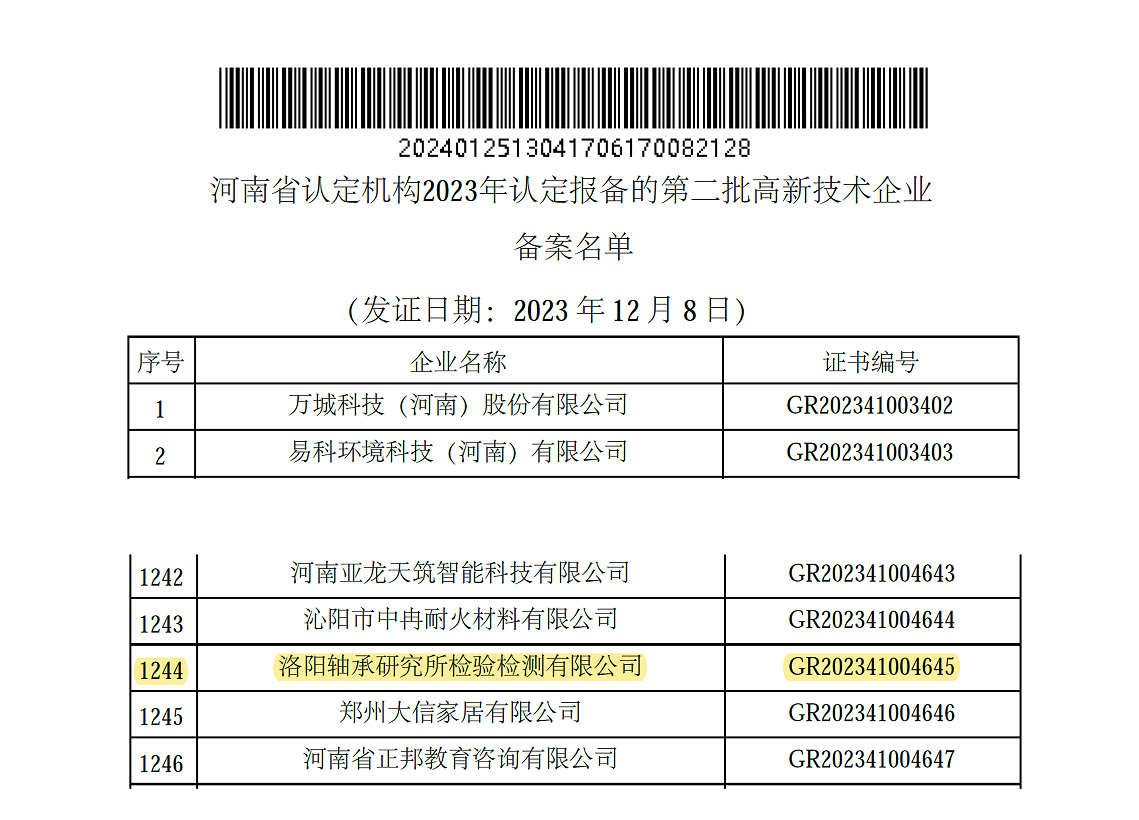 近日,經(jīng)過嚴(yán)格的審核和考評,洛陽軸承研究所檢驗(yàn)檢測有限公司(以下簡稱“檢測公司”)成功獲得由河南省認(rèn)定機(jī)構(gòu)辦公室認(rèn)定、國家相關(guān)部門頒發(fā)的“高新技術(shù)企業(yè)”認(rèn)定證書,標(biāo)志著檢測公司在科技創(chuàng)新和研發(fā)實(shí)力方面取得顯著成就,為行業(yè)的持續(xù)發(fā)展注入新的動(dòng)力。