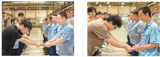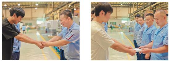 一份熱氣騰騰的早餐,一瓶潤(rùn)人心田的飲料,一罐洋溢清香的口香糖,一句暖人心扉的話語(yǔ)……大家以豐富多樣的形式感謝師傅們一直以來(lái)的拳拳關(guān)愛(ài)與諄諄教導(dǎo)。他們猶如一股清泉,為公司高質(zhì)量發(fā)展注入了蓬勃的新生力量。從徒弟成長(zhǎng)為師傅,再由師傅引領(lǐng)新的徒弟,這場(chǎng)師徒間的接力賽,綻放著璀璨的“質(zhì)造+智造”之光。