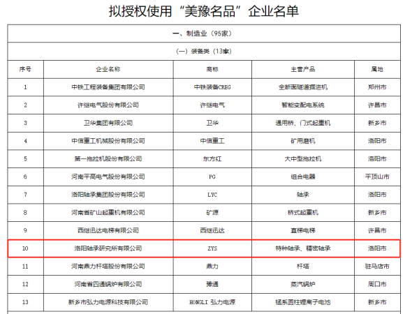 1月9日,由河南省質(zhì)量強(qiáng)省戰(zhàn)略工作領(lǐng)導(dǎo)小組辦公室主辦的河南省首批“美豫名品”發(fā)布活動(dòng)在鄭州舉行,全省各類(lèi)獲授權(quán)企業(yè)128家,其中裝備制造企業(yè)13家,軸研所ZYS榜上有名,是ZYS榮獲全國(guó)“馳名商標(biāo)”后又一品牌方面殊榮。