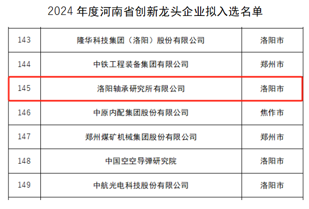 近日,河南省科技廳公布了2024年度河南省創(chuàng)新龍頭企業(yè)名單。軸研所從申報(bào)企業(yè)中脫穎而出,繼2021年度之后再次榮獲“河南省創(chuàng)新龍頭企業(yè)”稱號(hào)。