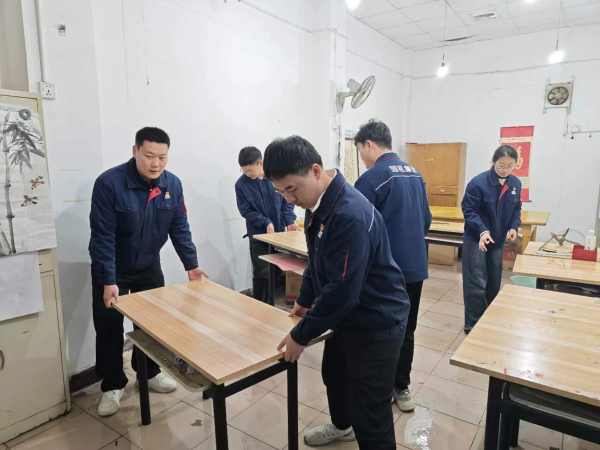 裝備試驗(yàn)事業(yè)部團(tuán)支部的團(tuán)員們帶著勞動(dòng)工具來到退休辦,分為三組展開服務(wù):搬運(yùn)組的團(tuán)員們依次將漏水房間的桌椅搬至活動(dòng)室,并整齊擺放在指定位置;清潔組的團(tuán)員們用長柄掃帚仔細(xì)清理房梁角落的蛛網(wǎng)積塵,連照片縫隙都不放過;慰問組的團(tuán)員們傾聽老同志們講述公司的發(fā)展故事,現(xiàn)場洋溢著歡聲笑語。