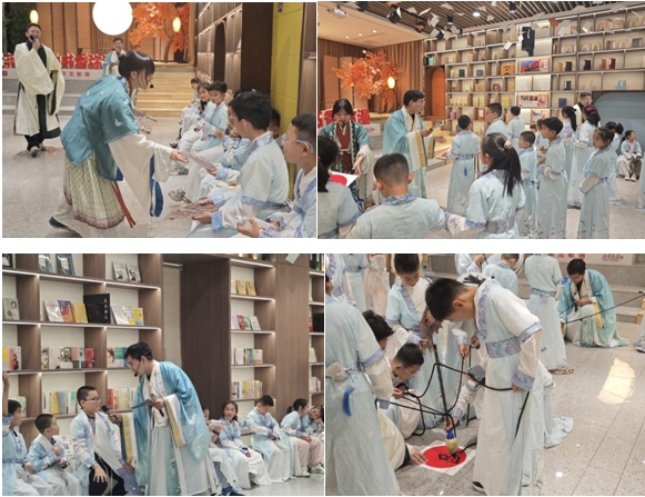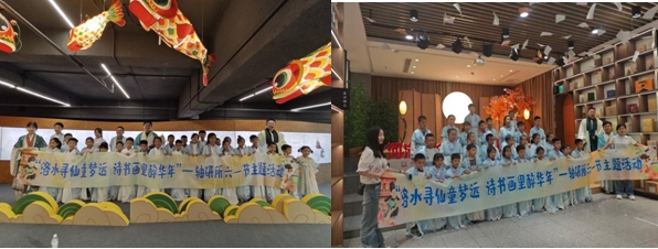 家長陪伴孩子們完成《洛神賦》知識問答,在古雅的場景中構(gòu)建起文化對話的橋梁。此次“書香+親子”模式讓抽象的文化符號轉(zhuǎn)化為可感知、可參與的成長養(yǎng)分,當(dāng)孩子們捧著《洛神賦》文創(chuàng)禮物離場時(shí),傳統(tǒng)文化的種子已隨水拓畫的漣漪、毛筆字的墨香悄然扎根。